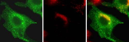 Figure 1. At low to normal Cu levels, ATP7B resides in the Golgi region in transfected CHO cells. Left panel, ATP7B;